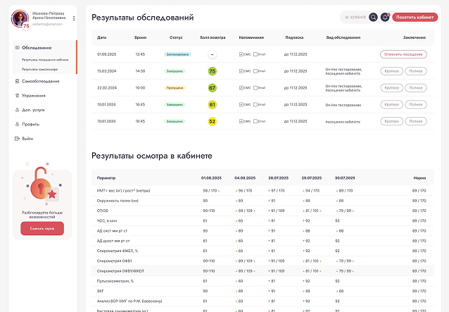 - Персонализировано — рекомендации и программа развития здоровья.